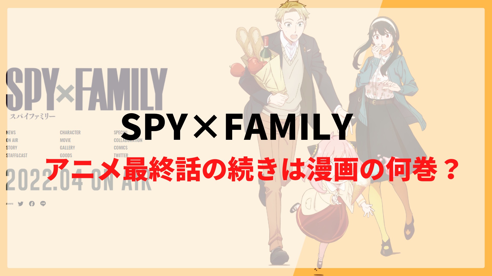 アニメSPY×FAMILY アニメ最終話の続きは漫画の何巻?予想してみた 大人気漫画 SPY×FAMILYがアニメ化しました! 2022年4月の春アニメから放送が開始するSPY×FAMILYですが、アニメは漫画の何巻まで放送するのでしょうか? SPY×FAMILYは分割2クールが決定しています。まずは... 2022.02.07アニメ漫画
