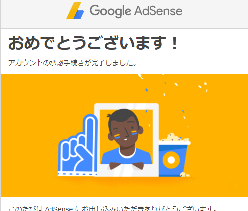 本日Googleアドセンスから認証手続き完了のメールが届きました。