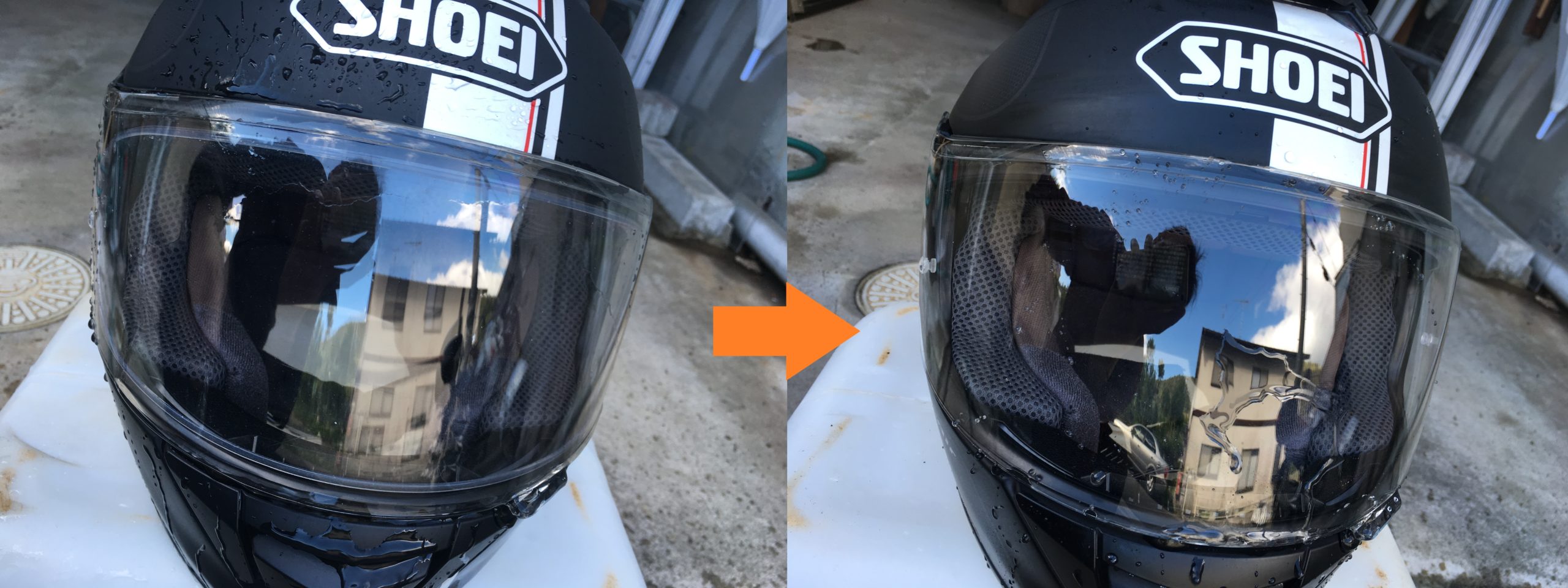 あとこんな簡単に取り付けられるのに、水滴が全く入ってこなくて気密性が凄いぞSHOEI